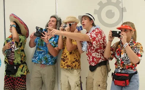 See these American tourists? They just arrived in Mexico, but none of them speaks the language. That became a problem when Charlie (in the red Hawaiian shirt) tried to explain to the waitress that he is 32 years old. He meant to say, “Tengo 32 años.” But what he actually said was, “Tengo 32 anos:”: “I have 32 anuses.” It went downhill from there.
