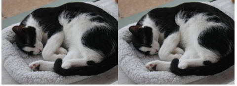 At left: Our tuxedo cat Buddy fitfully trying to sleep. Notice how stressed out he appears. My guess is he’s worried about when he’s going to be fed next. At right: Buddy after I just sang him a song I wrote about bunnies. See how totally Zen he is. Buddy finds my music very soothing.